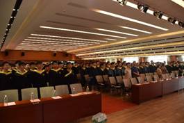 毕业典礼在庄严的国歌声中拉开帷幕,全体与会人员齐声高唱国歌。留恋与不舍,感恩与铭记,期盼与希冀,万千心绪都交织在了这一次盛大相聚。