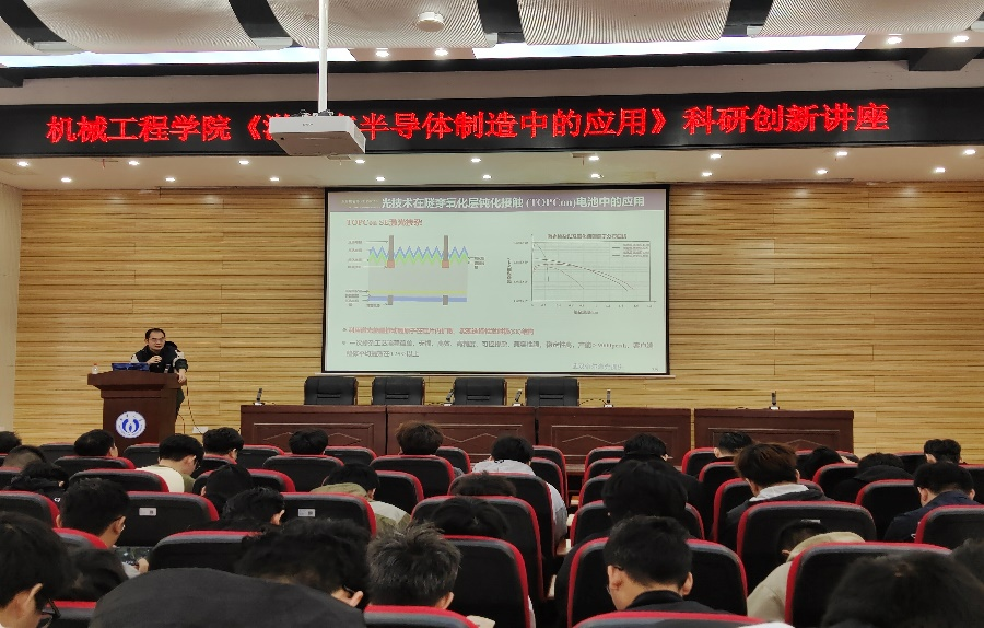 随后,张臣副教授还详细介绍了IC制造工艺,完整呈现了芯片生产流程。在光伏电池制造工艺方面,他介绍了以硅材料为主流的光电效应发电流程,并强调功率器件制造工艺需兼顾高压,在保证器件耐压、耐流的同时,实现高效的功率控制。此外,他还阐述了OLED平板显示制造中通过蒸镀有机发光材料、利用光刻胶实现精准图案化等技术,这些技术对高显示面板的性能提升具有关键作用。