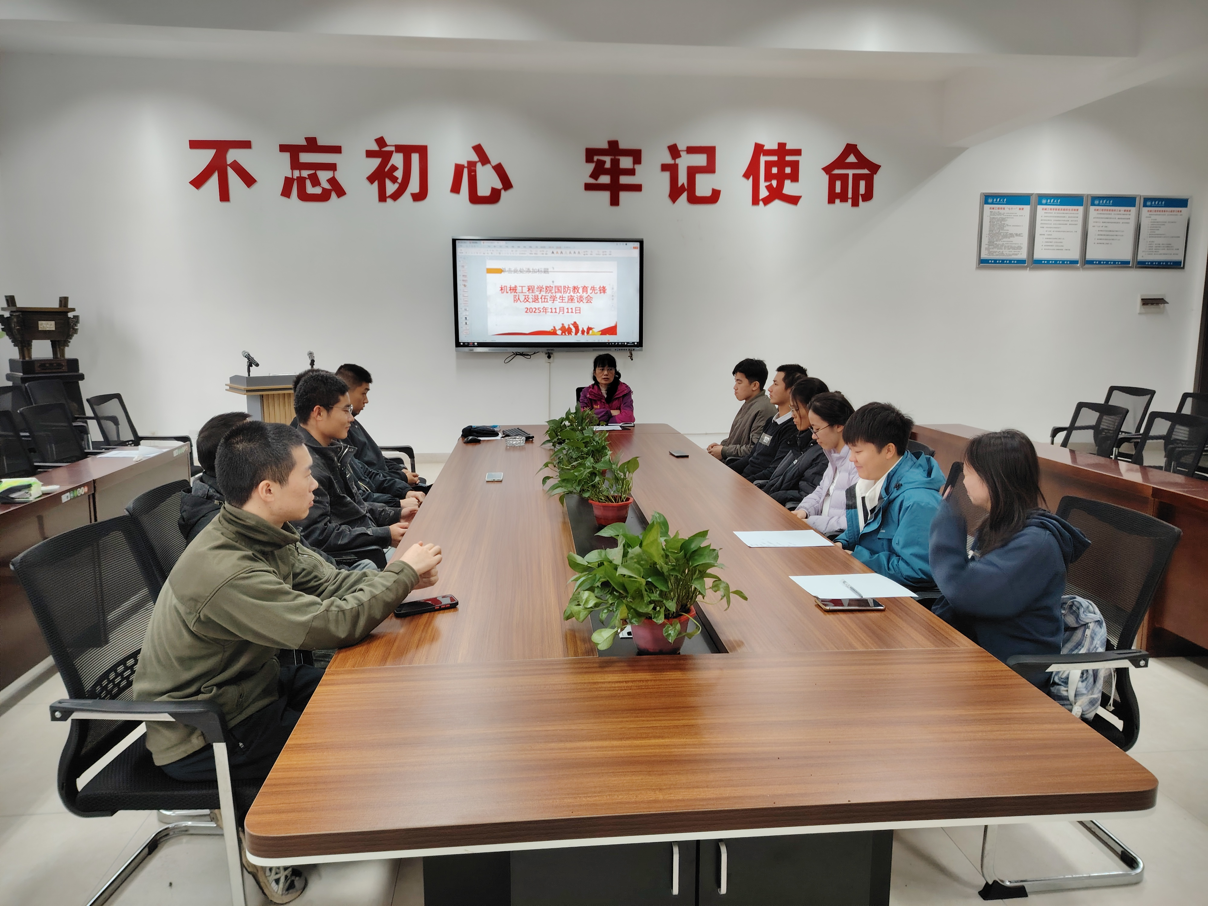 近日,值中国人民解放军空军建军76周年之际,机械工程学院召开了国防教育先锋队及退伍学生座谈会。会议由学院征兵专干古江汉老师主持,学工室主任杨佳老师、学院国防教育先锋队及退伍学生参会。