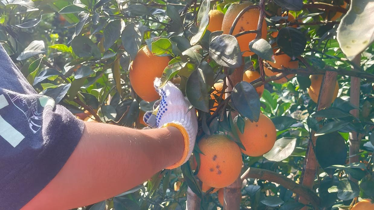 整理完葡萄园后,小分队同学又走进基地脐橙园,助力果农采收,体验丰收的喜悦。亲手将金黄的脐橙收入果篮,同学们的劳动成就感也油然而生。