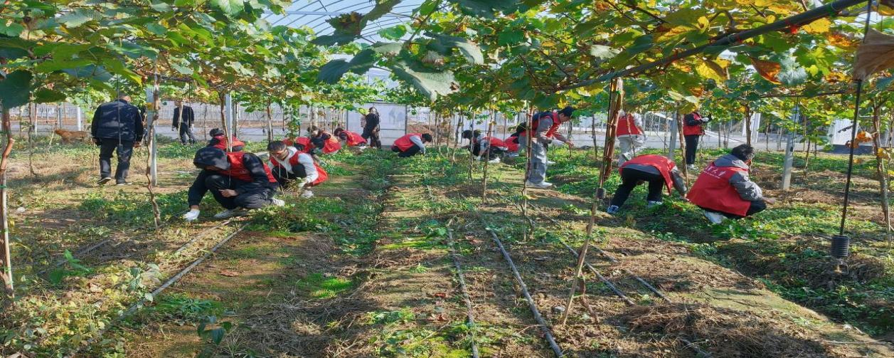 抵达基地葡萄园后,在村支书的指导下,小分队同学分工协作,迅速投入到劳动中,有的整饬葡萄藤架,有的清理杂草,搬运草垛,处处可见大家忙碌的身影。