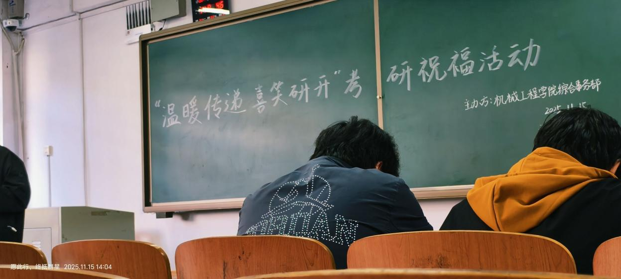 此次考研祝福活动的圆满举办,是机械工程学院关心学生成长、助力考研备考的具体实践。活动不仅为考研学子送去了精神慰藉与前行力量,更营造了互助友爱、携手共进的良好校园氛围。愿全体备战考研的学子们能够带着这份温暖与期许,在考场上沉着应战、不负韶华,顺利抵达理想彼岸!