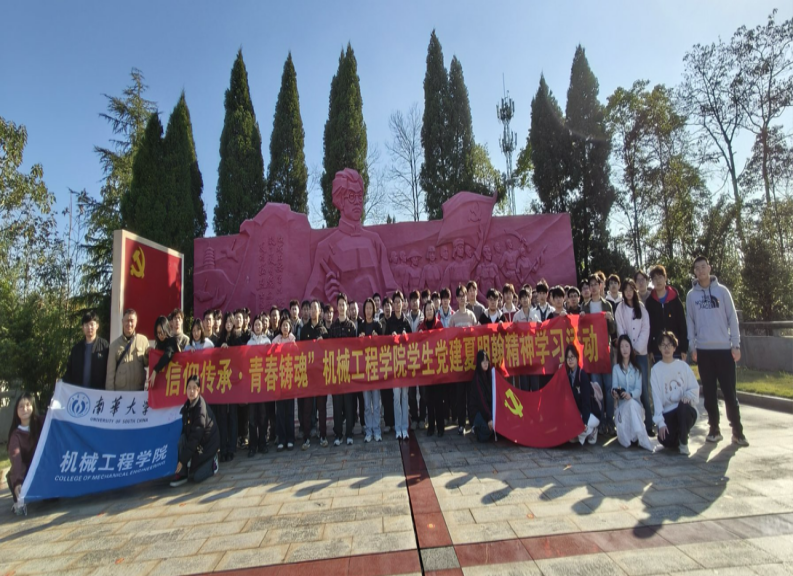 为深入学习贯彻党的二十届四中全会精神,传承红色基因,弘扬革命精神,2025年11月21日下午,机械工程学院学生党建委员会组织全体学生党员、预备党员、发展对象赴衡阳县洪市镇礼梓村夏明翰故居,开展以“弘扬明翰精神 筑牢信仰之基”为主题的党建实践学习活动,在实地研学中感悟革命先烈的信仰力量与初心使命。通过实地参观、重温誓词、专题学习等形式,引导党员、预备党员、发展对象从红色历史中汲取奋进力量,筑牢信仰之基。
