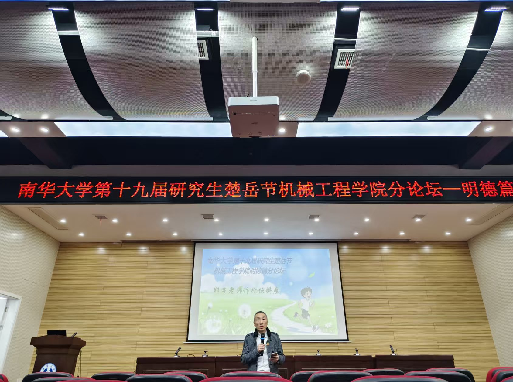 11月28日下午,南华大学第十九届研究生学术节机械工程学院明德篇分论坛在崇业楼学术报告厅成功举办。本次论坛以“博观约取,知行合一”为主题,旨在深化研究生对心理健康的认识,增强心理调适能力,帮助大家在学术与人生道路上更加从容自信。本次活动由南华大学党委研究生工作部指导,机械工程学院承办。研究生助管徐唐担任主持,各学院研究生积极参与。